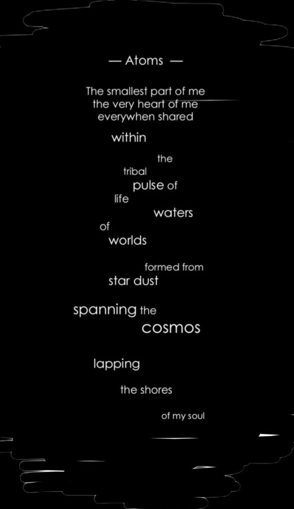 These pieces all use a visual format integral to the reading and interpretation of the poem, whether through use of white spaces or some form of image or graphic.